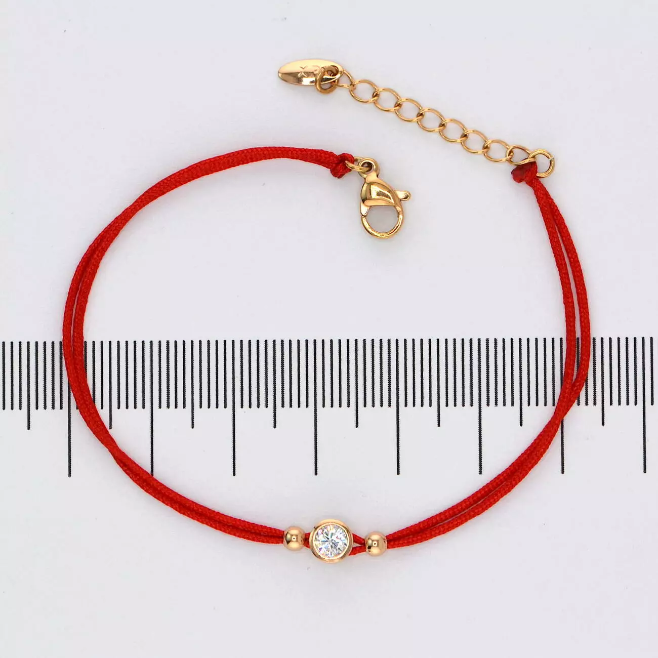Браслет на руку 17+3 см Xuping червона нитка з камінцем 5 мм з медичного золота позолота 18К