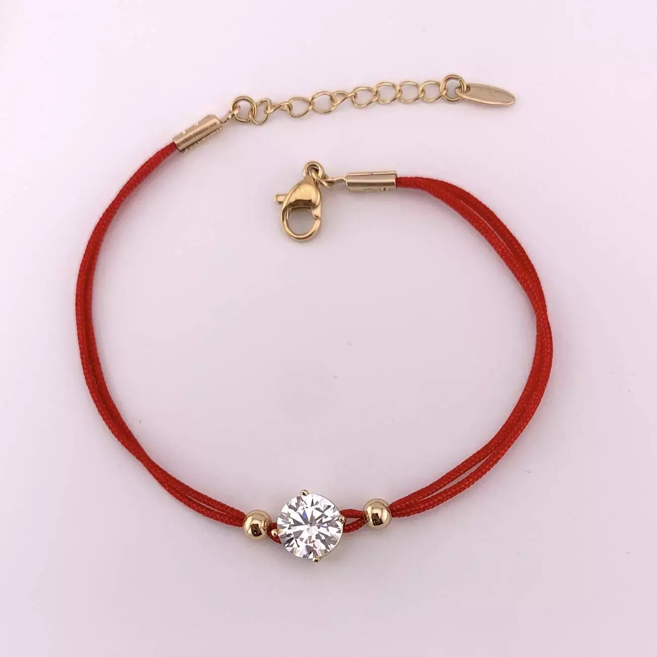 Браслет на руку 17+3 см Xuping червона нитка з камінцем 8 мм з медичного золота позолота 18К