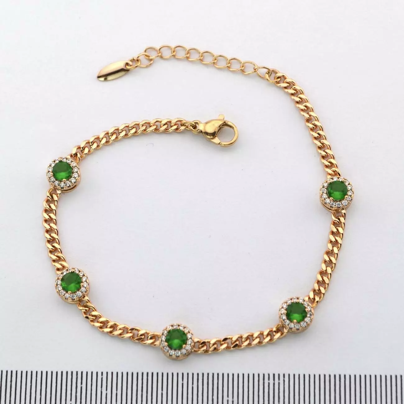 Браслет на руку 17+4 см Xuping с зеленими каменями з медичного золота позолота 18К