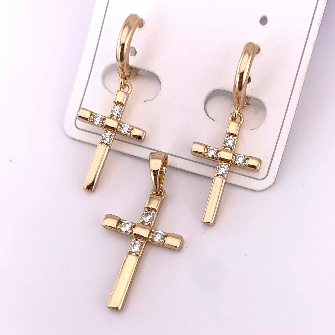 Комплект сережки + кулон хрестик Xuping з медичного золота позолота 18К