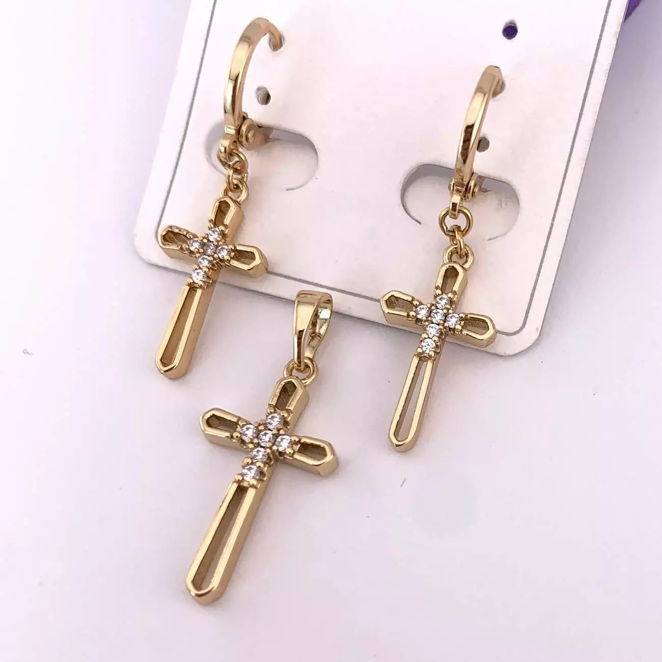 Комплект сережки + кулон хрестик Xuping з медичного золота позолота 18К
