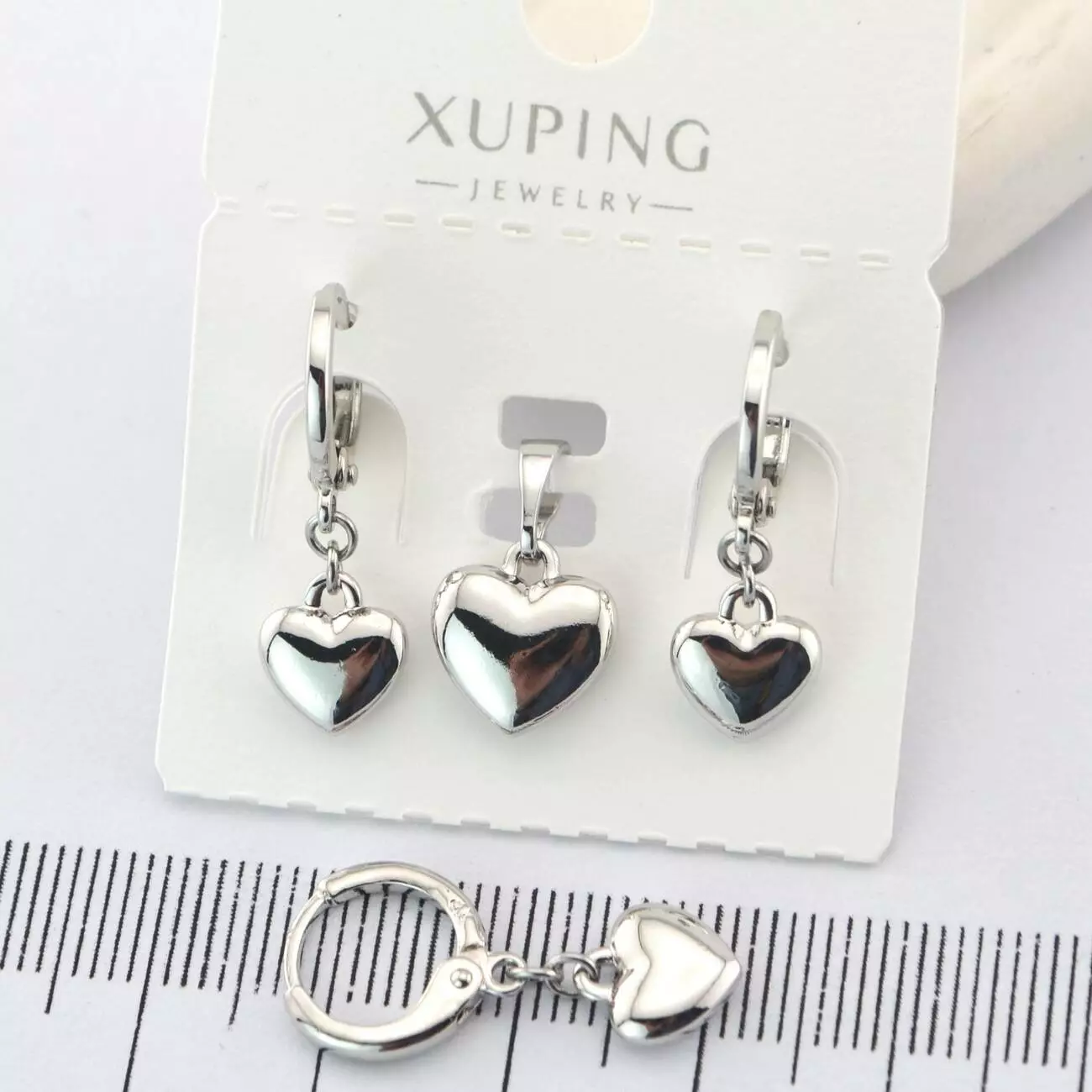 Комплект сережки + кулон сердечки Xuping з медичного золота родій (01587)