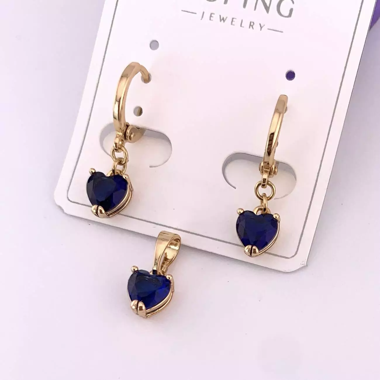 Комплект сережки + кулон сині сердечки Xuping з медичного золота позолота 18К