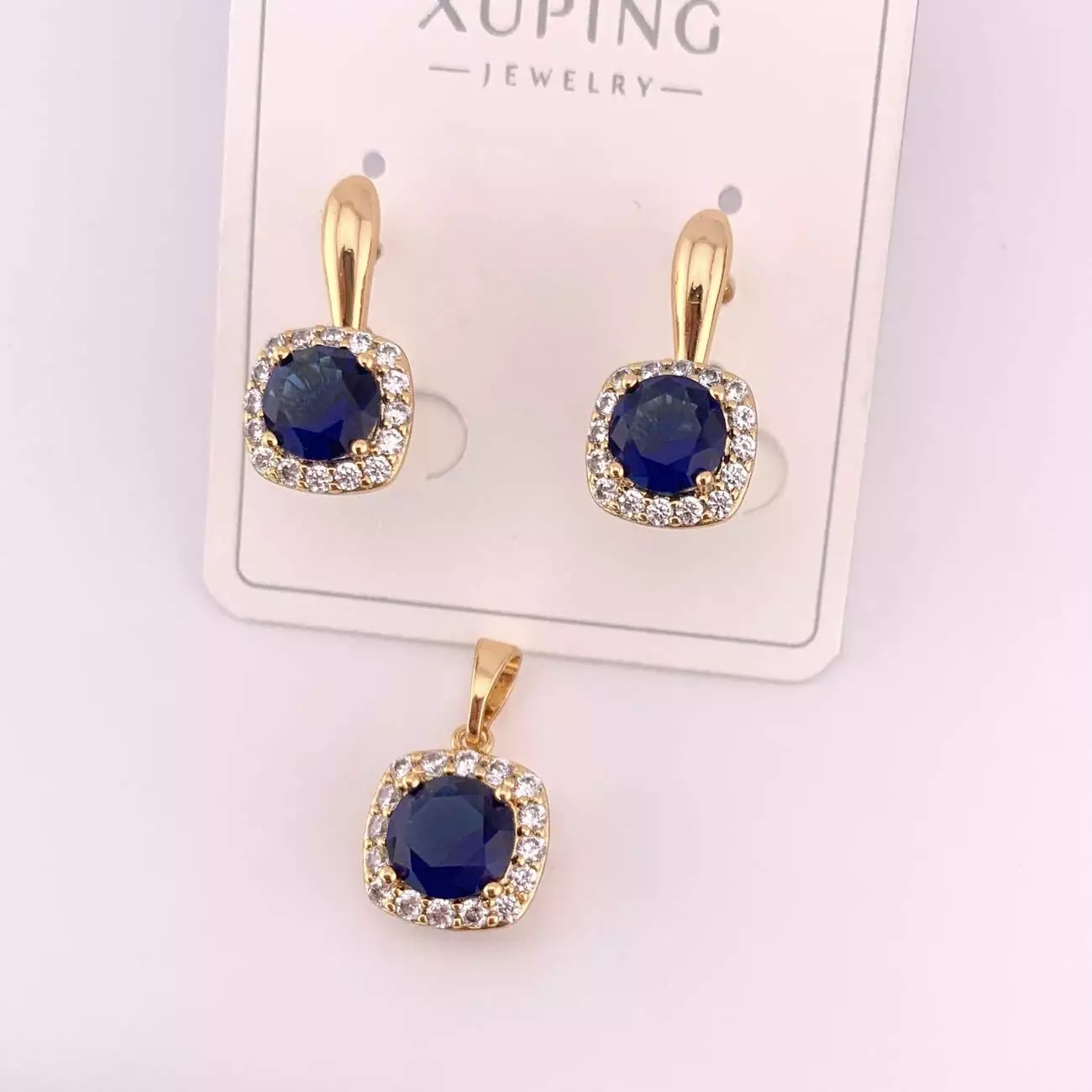 Комплект сережки + кулон синій камінь Xuping з медичного золота позолота 18К