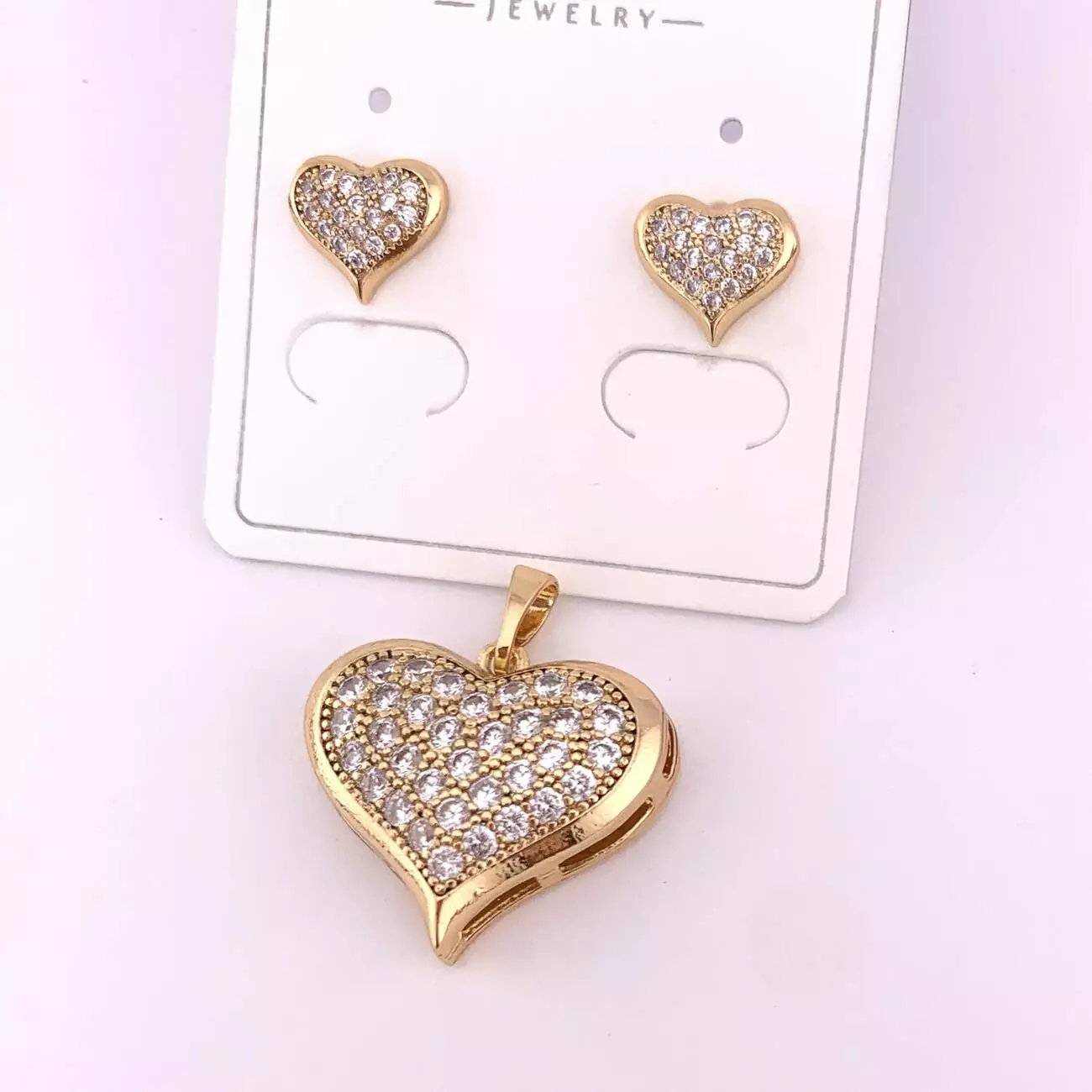 Комплект сережки цвяшки (пусети) + кулон сердечки Xuping з медичного золота позолота 18К