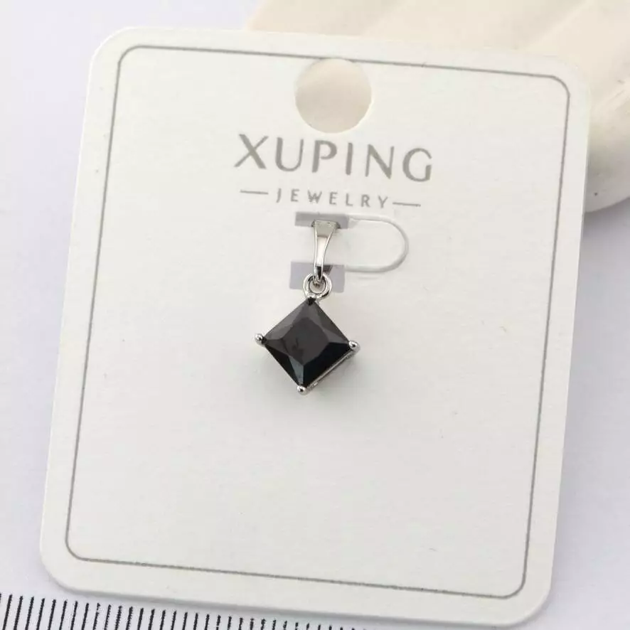 Кулон Xuping ромб чорний камінь з медичного золота родій (01522)