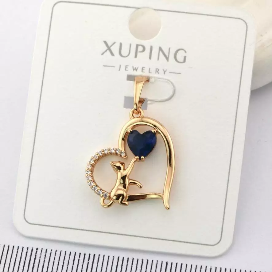 Кулон Xuping серце з котиком синій камінь з медичного золота позолота 18К (01431)