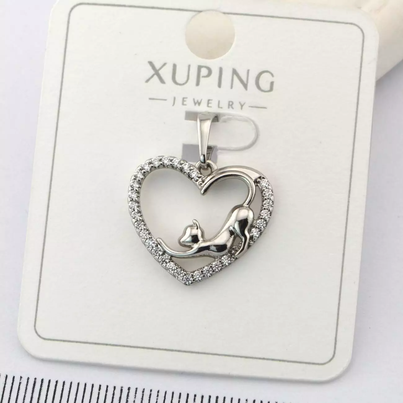 Кулон Xuping серце з котиком з медичного золота родій (01531)