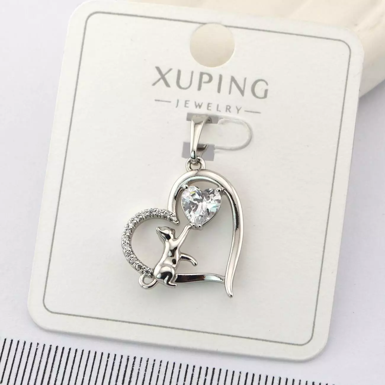 Кулон Xuping серце з котиком з медичного золота родій (01532)