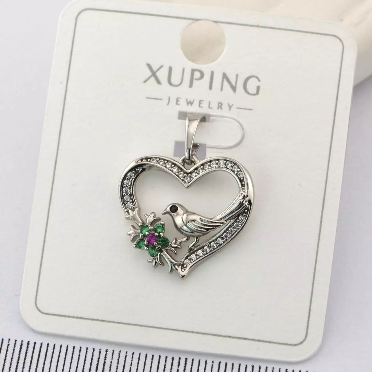Кулон Xuping серце з пташкою з медичного золота родій (01533)