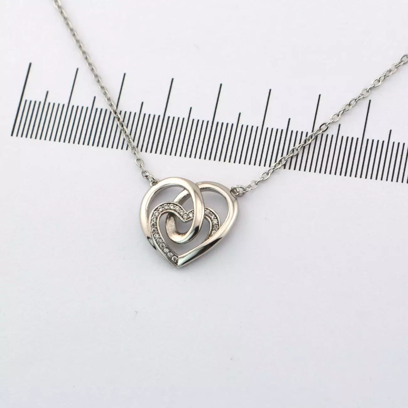 Підвіска Xuping 45+5 см з сердечком з медичного золота родій