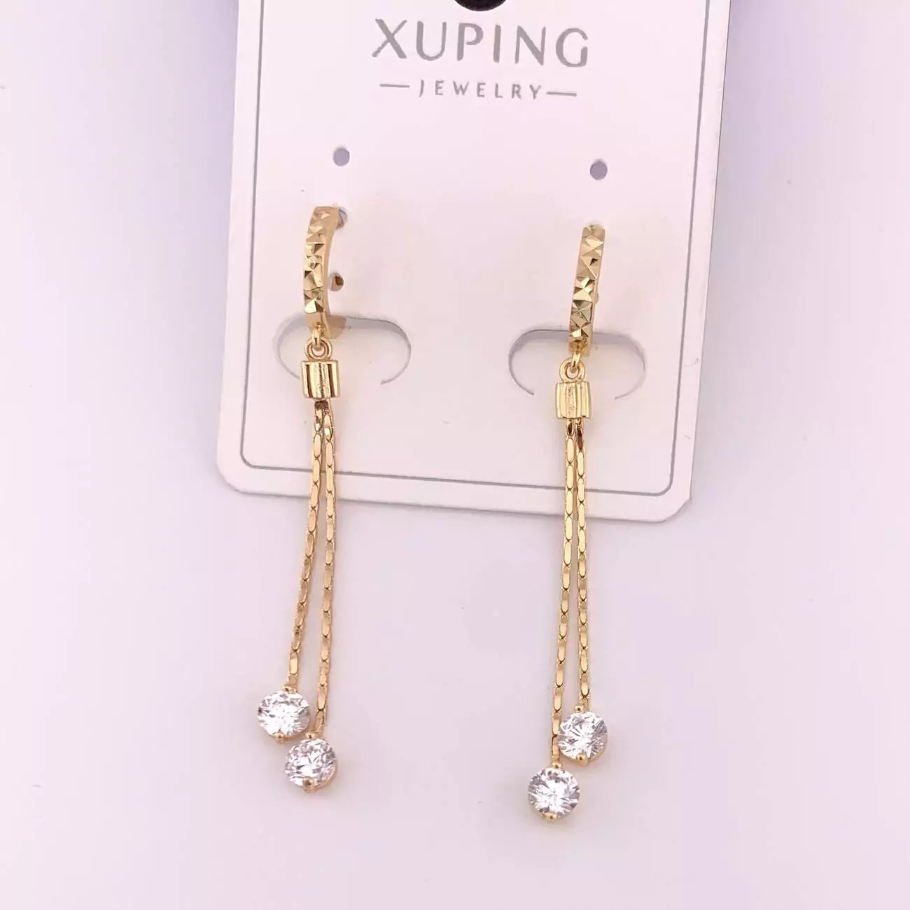 Сережки Xuping 2 ланцюжка з білими каменями з медичного золота позолота 18К