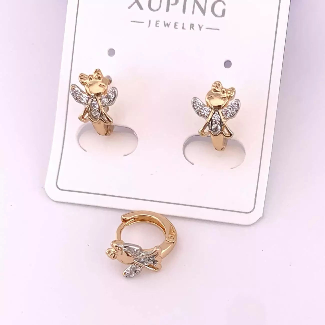 Сережки Xuping ангелочки з медичного золота позолота 18К+родій
