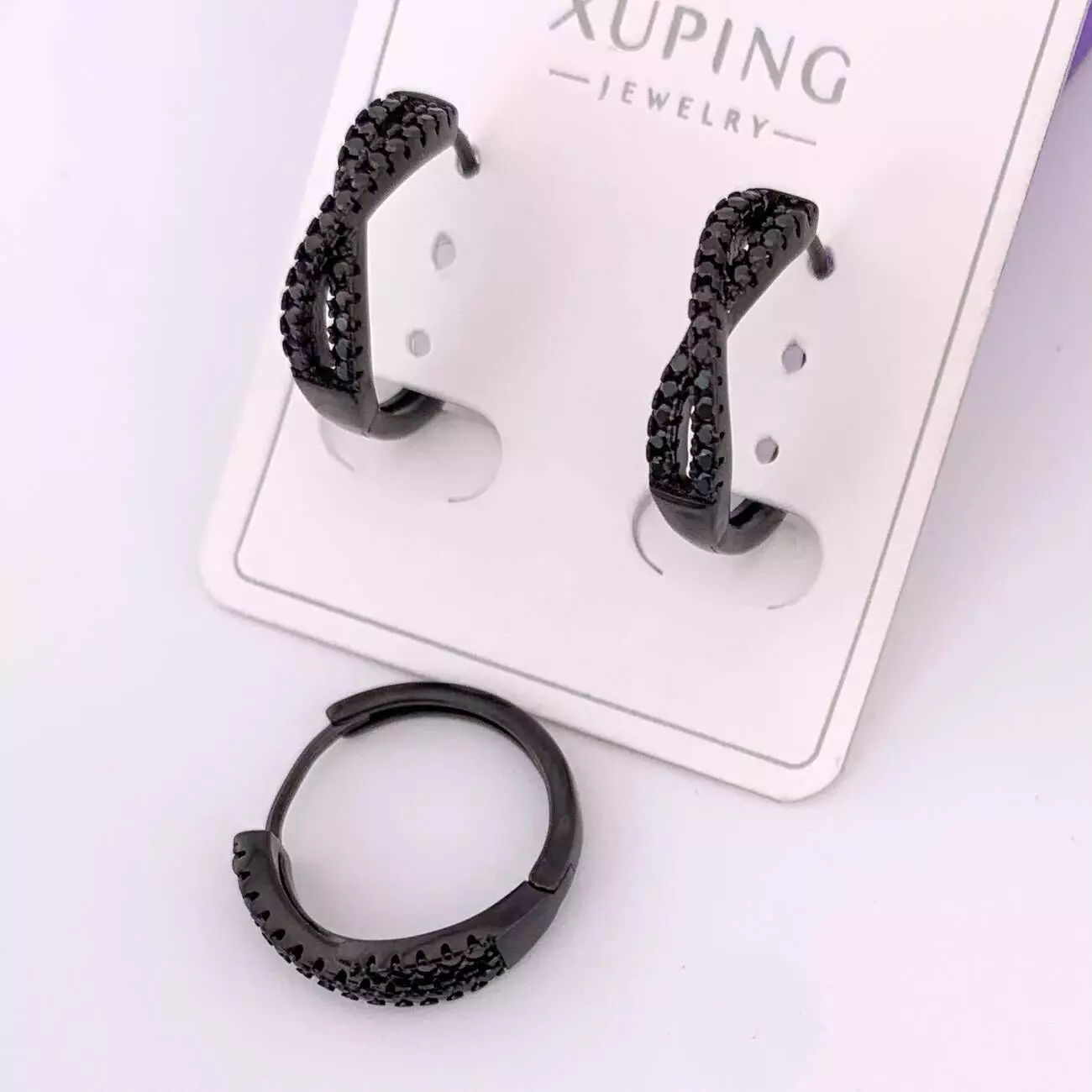 Сережки Xuping безкінечність з медичного золота чорна емаль