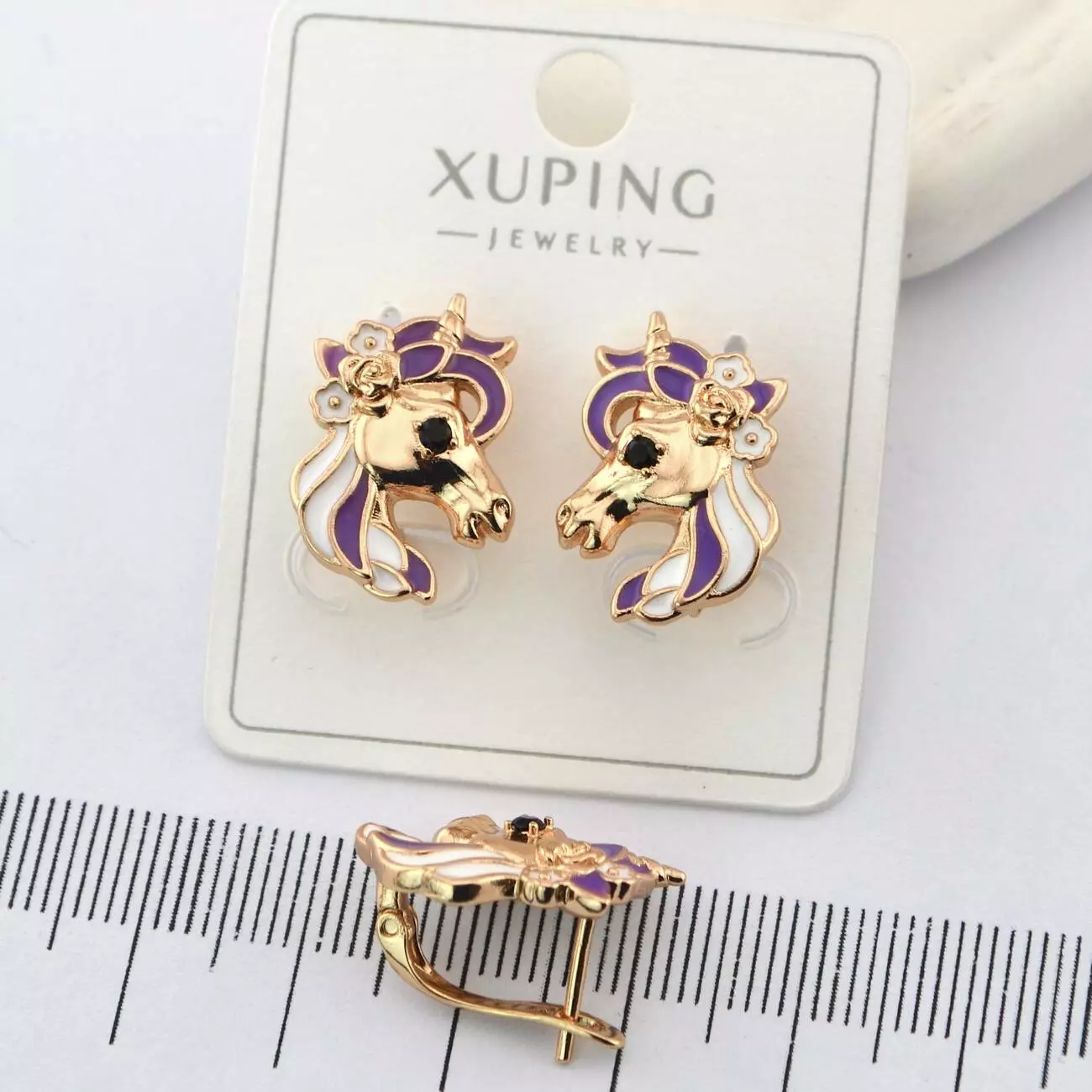 Сережки Xuping єдинороги з медичного золота позолота 18К (01464)