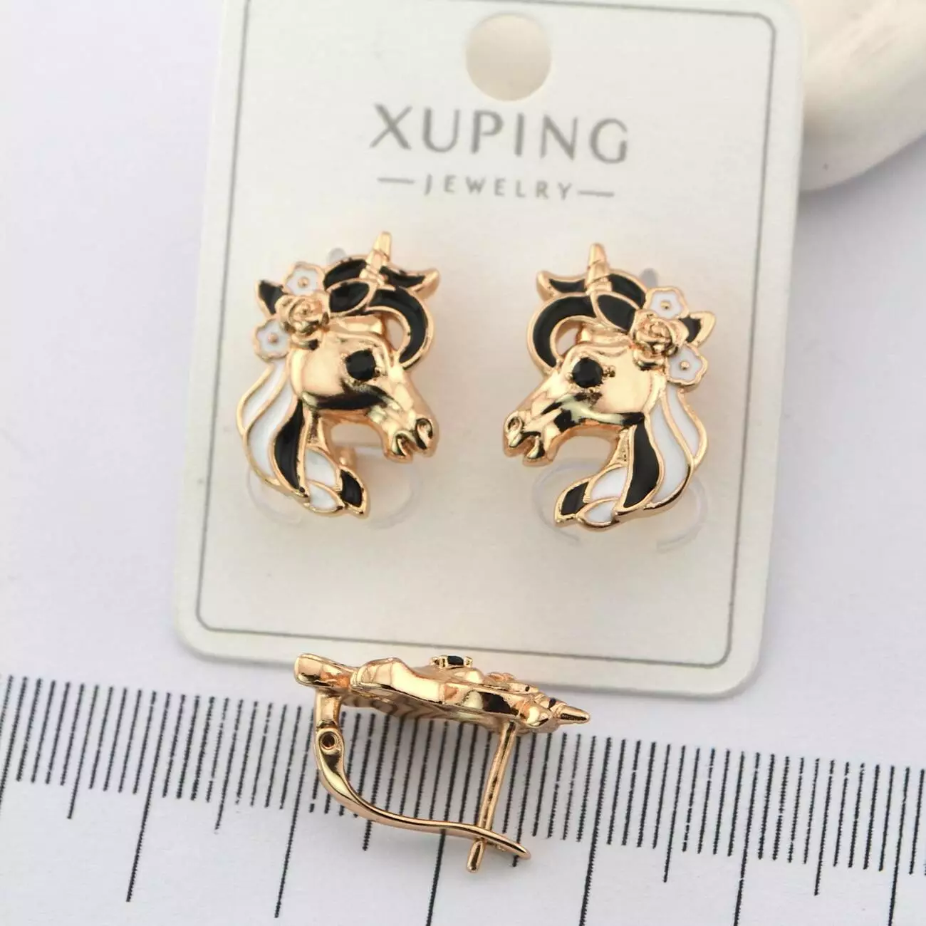 Сережки Xuping єдинороги з медичного золота позолота 18К (01465)