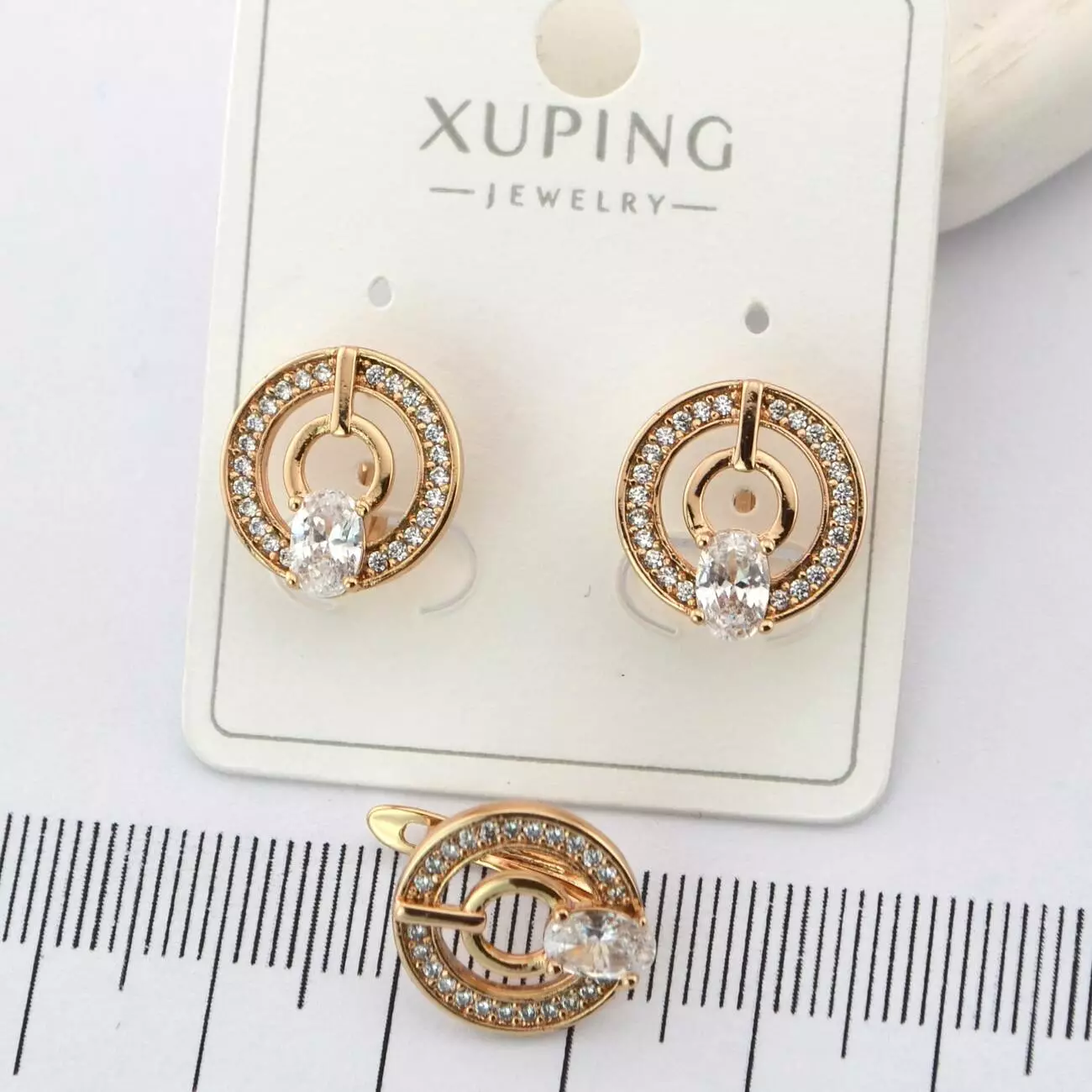 Сережки Xuping коло з білим каменем медичного золота позолота 18К