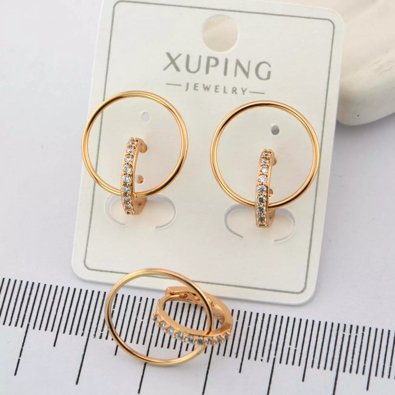 Сережки Xuping коло з білими каменями з медичного золота позолота 18К (01080)