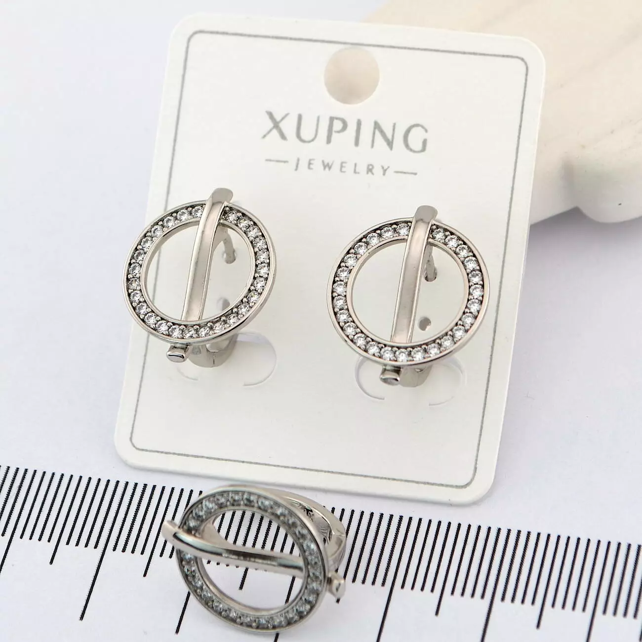 Сережки Xuping коло з білими каменями з медичного золота родій