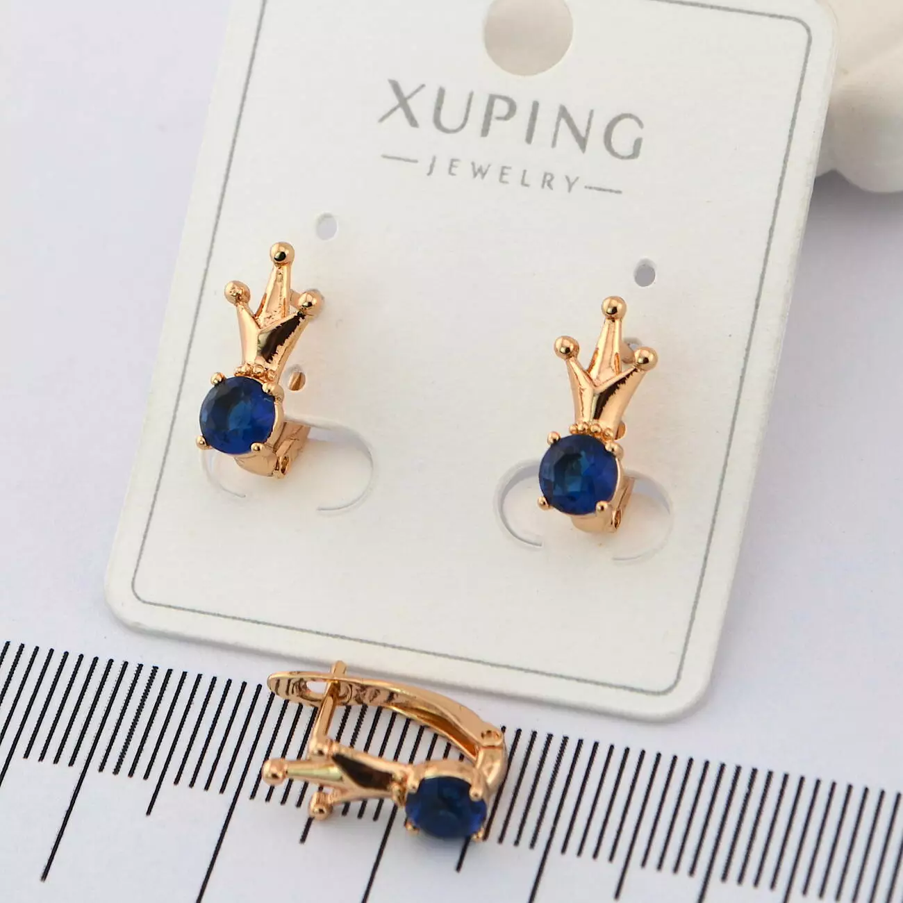 Сережки Xuping корони з синім каменем з медичного золота позолота 18К