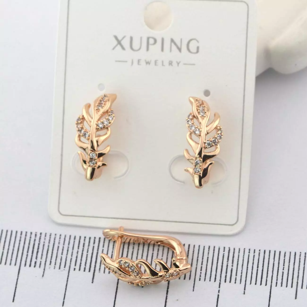 Сережки Xuping пірʼя з медичного золота позолота 18К (01736)