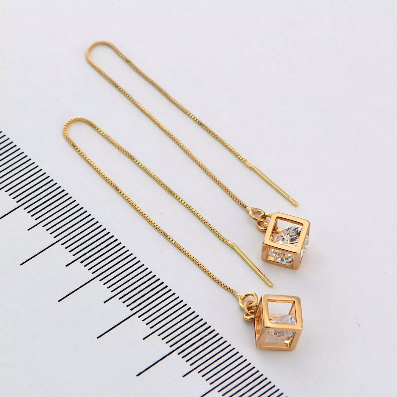 Сережки Xuping протяжки квадрат з медичного золота позолота 18К (00663)