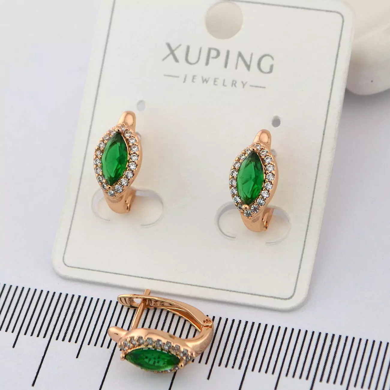 Сережки Xuping с зеленим каменем з медичного золота позолота 18К