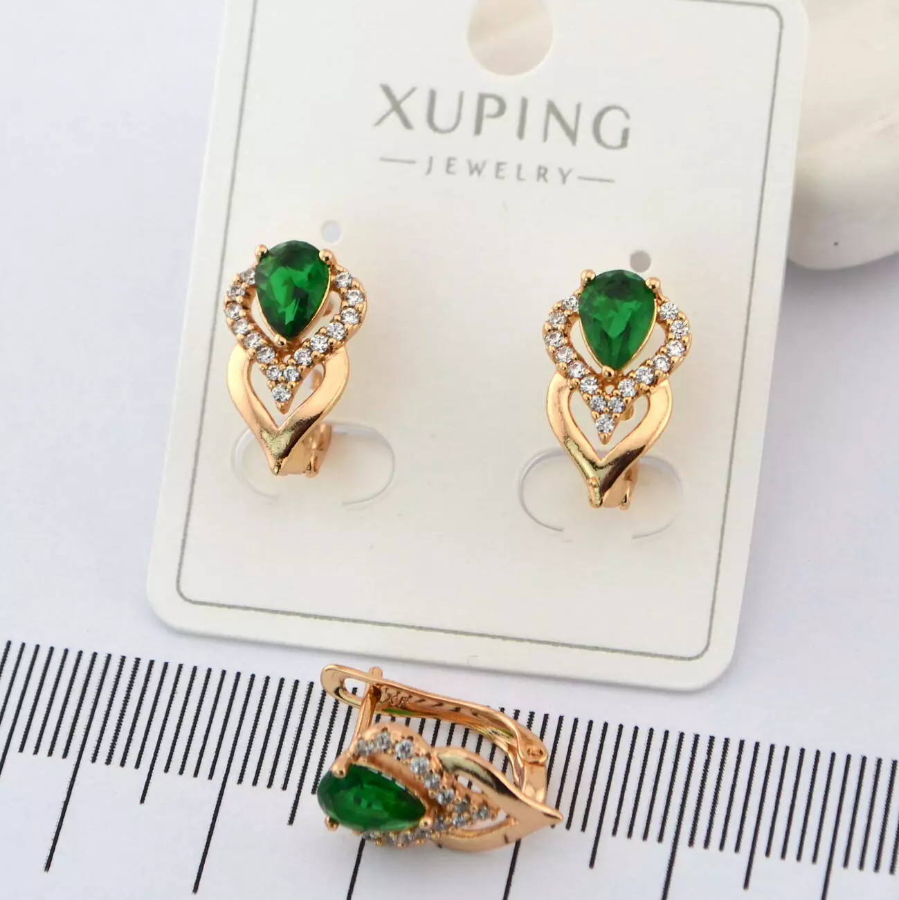 Сережки Xuping с зеленим каменем з медичного золота позолота 18К
