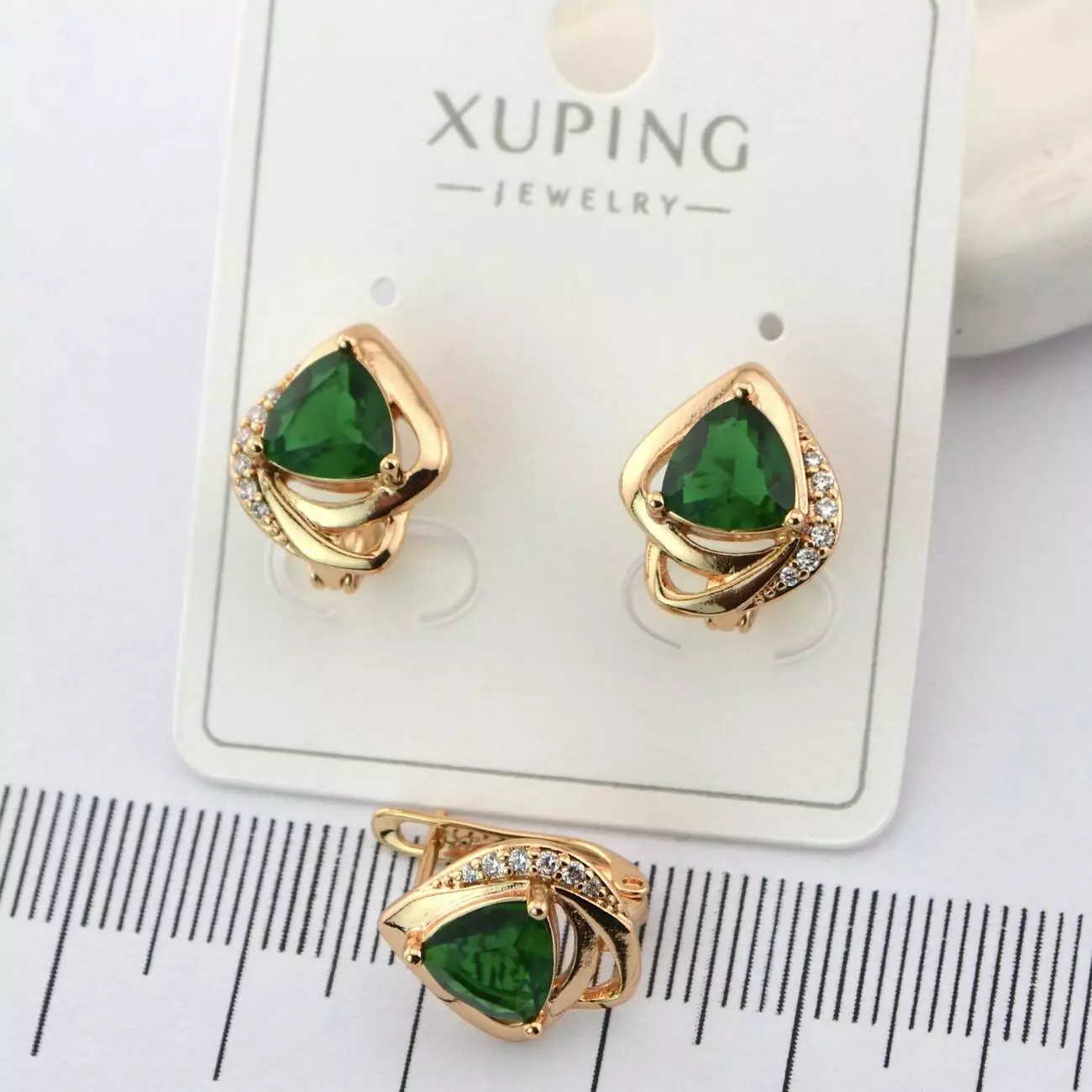 Сережки Xuping с зеленим каменем з медичного золота позолота 18К