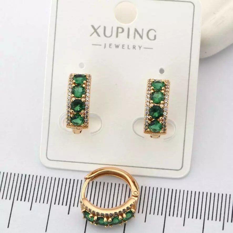 Сережки Xuping с зеленими каменями з медичного золота позолота 18К