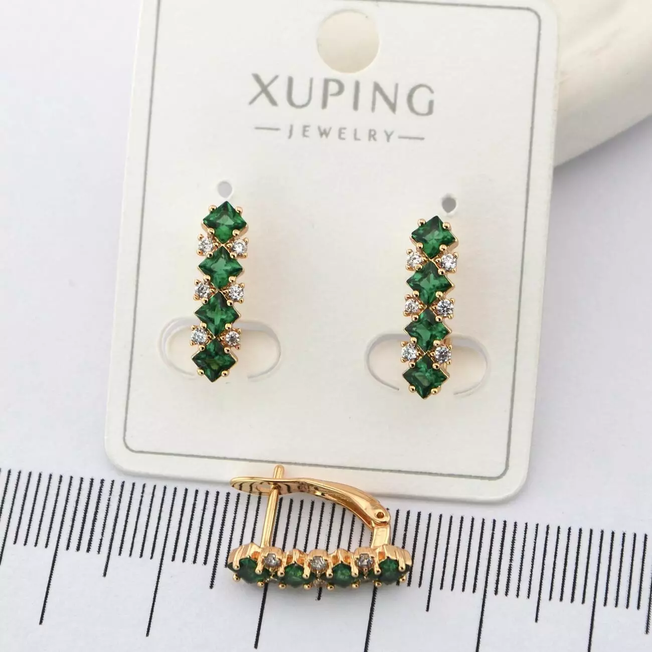 Сережки Xuping с зеленими каменями з медичного золота позолота 18К