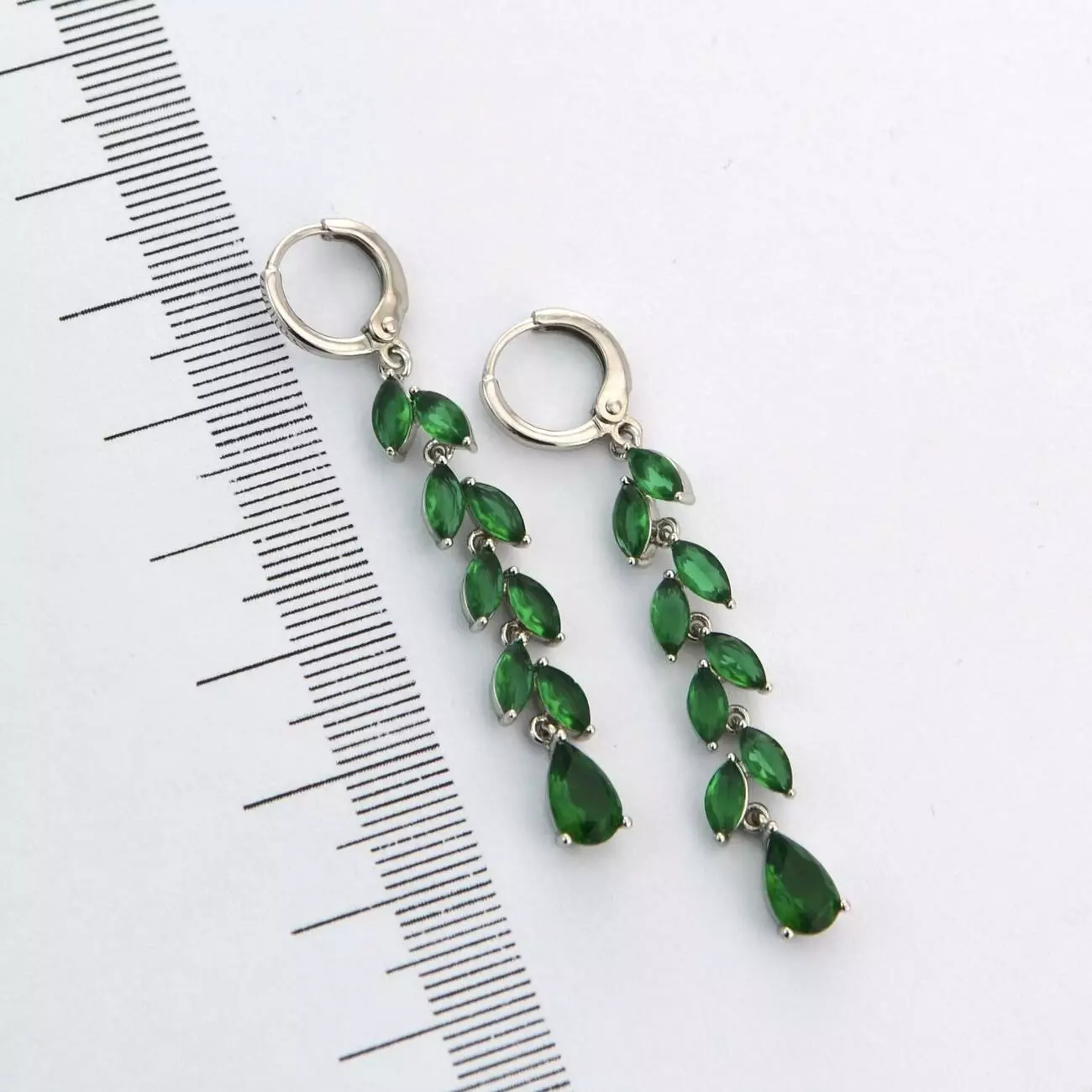 Сережки Xuping с зеленими камінцями з медичного золота родій (01583)