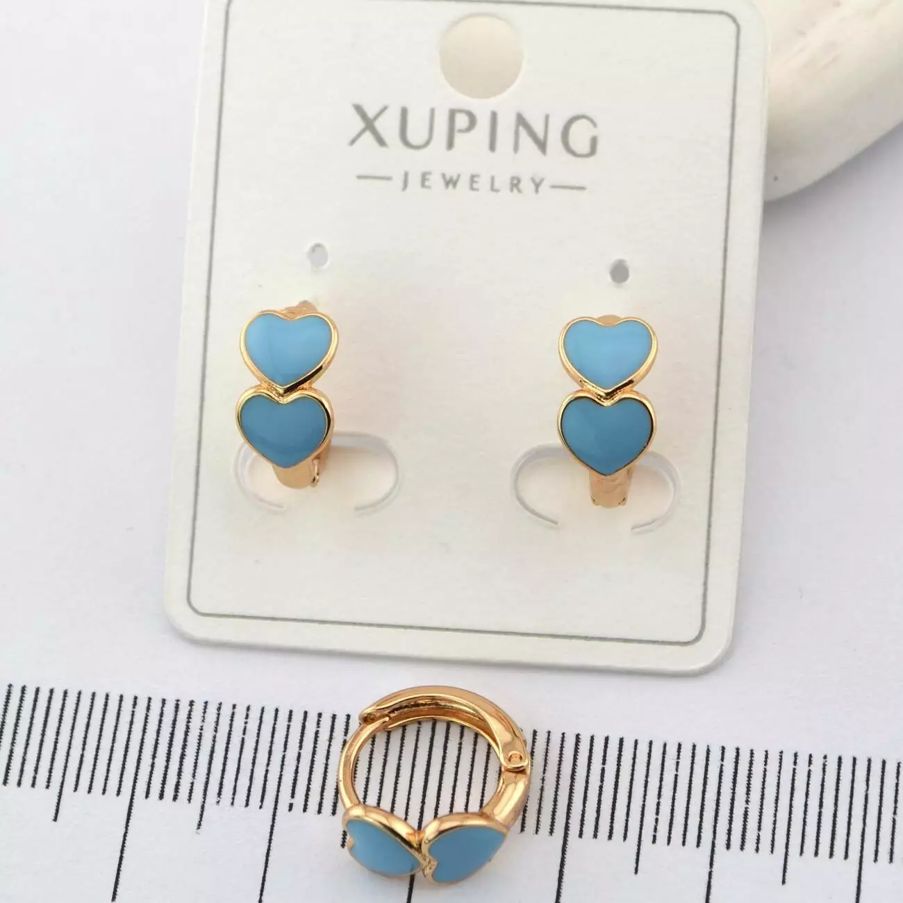Сережки Xuping сердечки блакитні з медичного золота позолота 18К (01461)