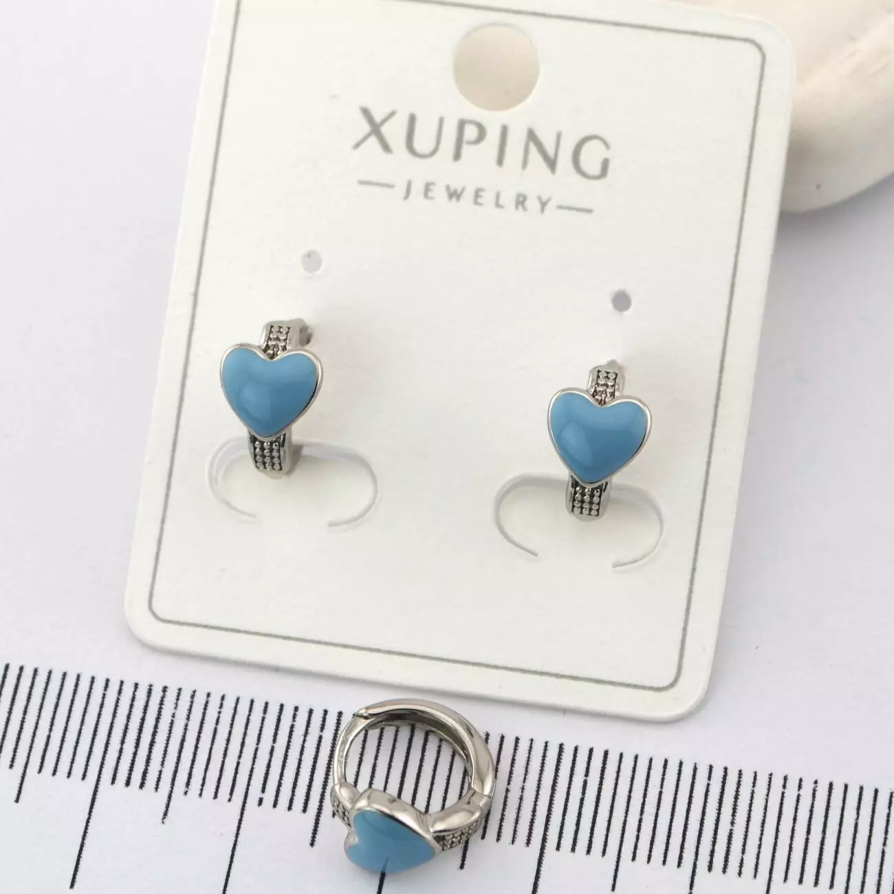 Сережки Xuping сердечки блакитні з медичного золота родій (01477)