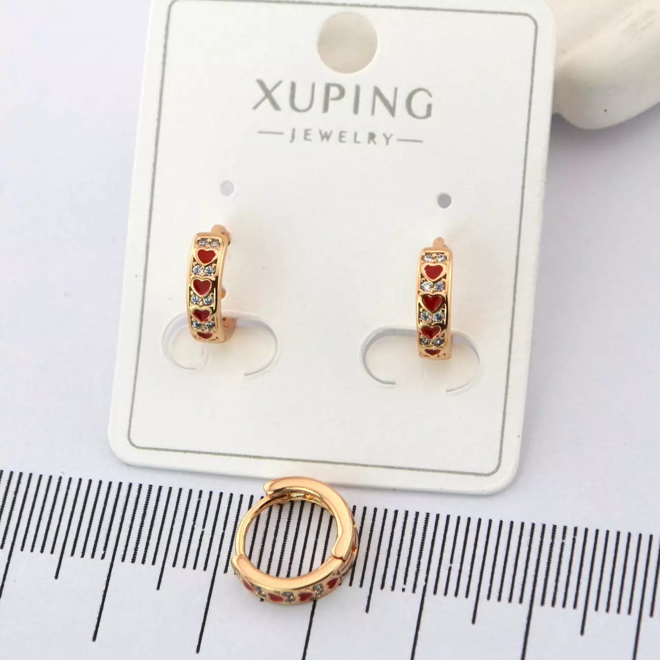 Сережки Xuping сердечки червоні з медичного золота позолота 18К