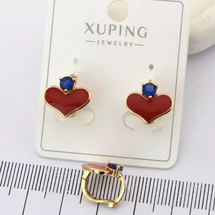 Сережки Xuping сердечки червоні з медичного золота позолота 18К (01466)