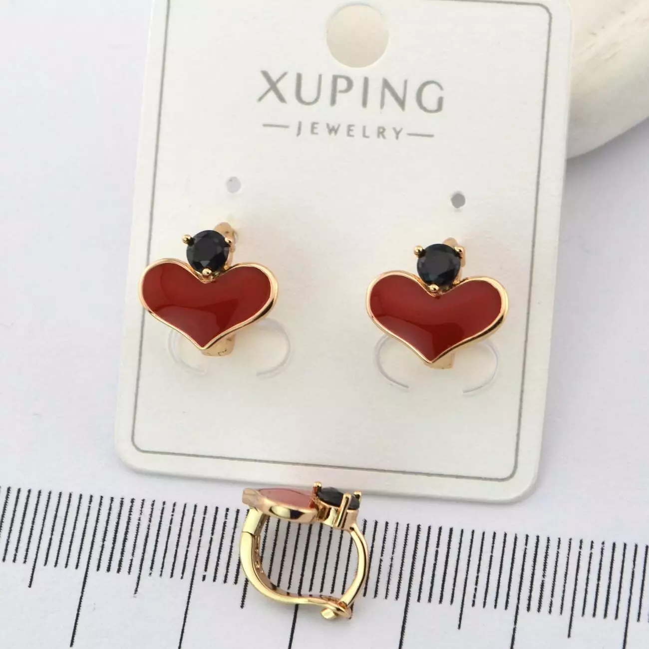 Сережки Xuping сердечки червоні з медичного золота позолота 18К (01467)