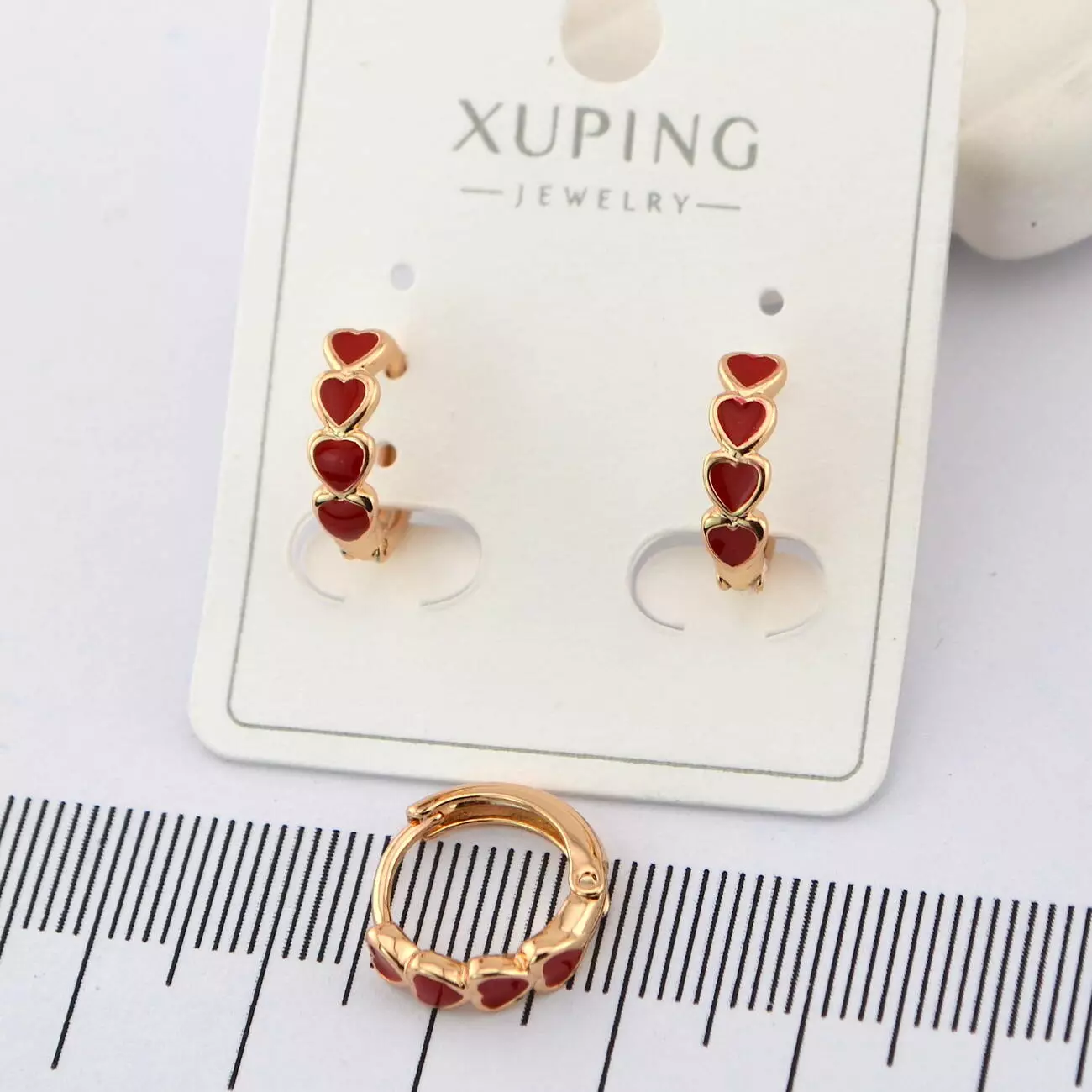 Сережки Xuping сердечки червоні з медичного золота позолота 18К
