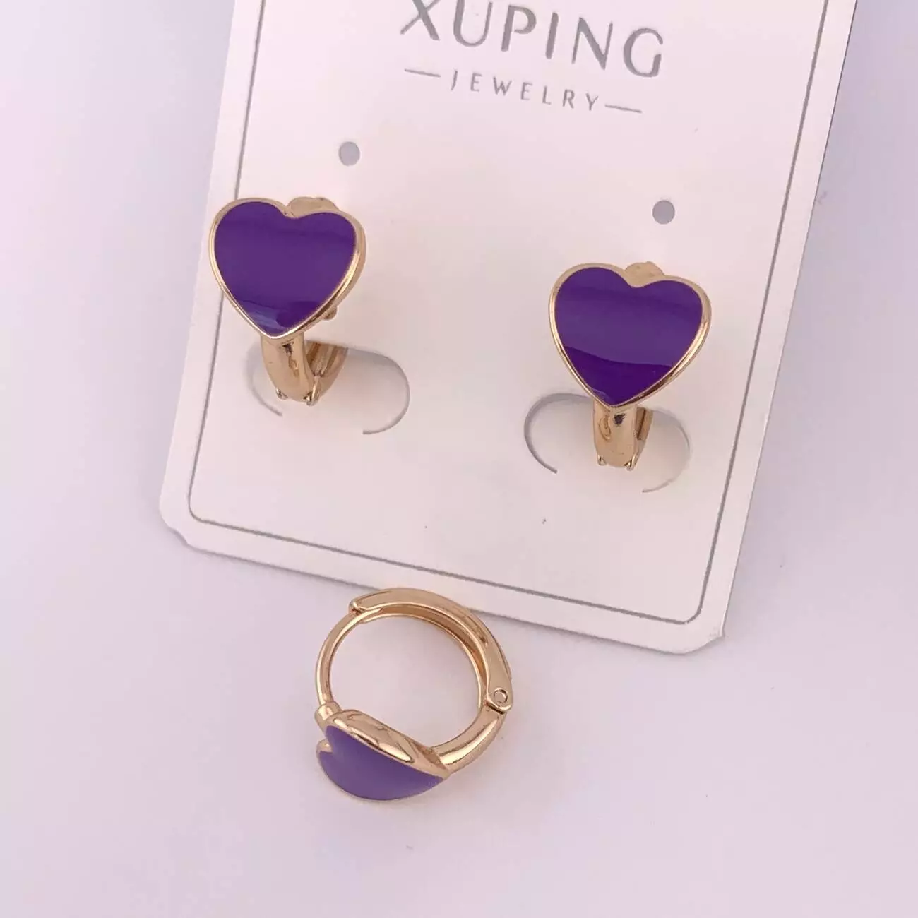 Сережки Xuping сердечки фіолетові з медичного золота позолота 18К