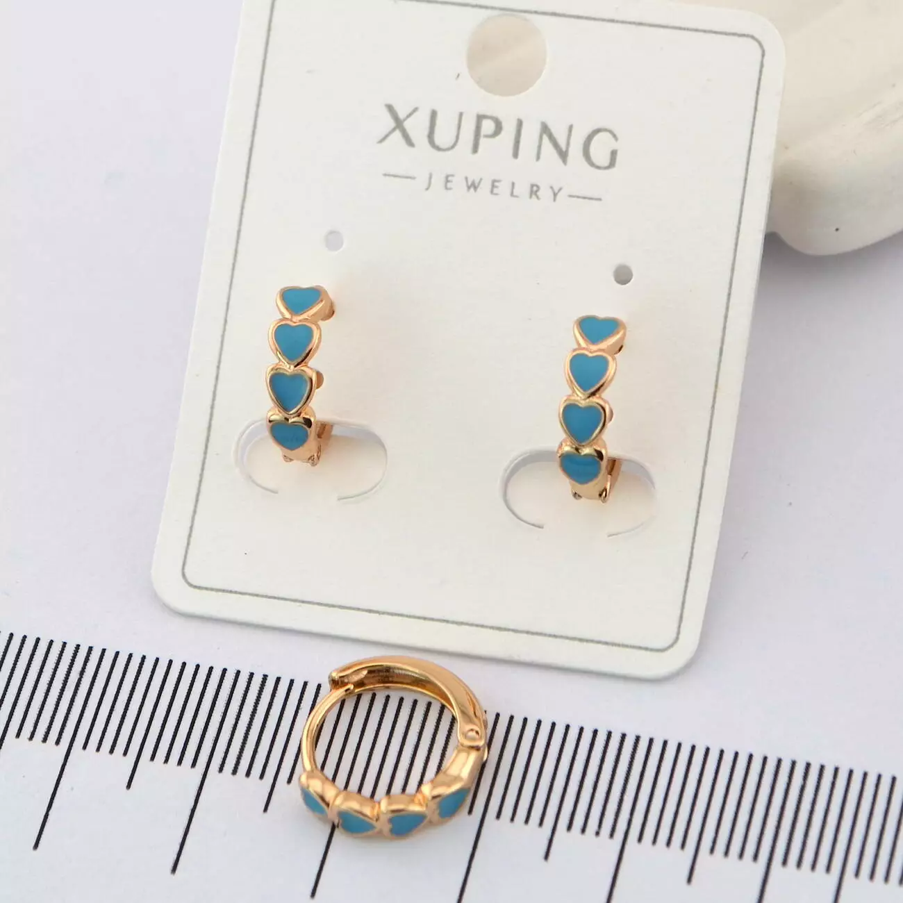 Сережки Xuping сердечки сині з медичного золота позолота 18К