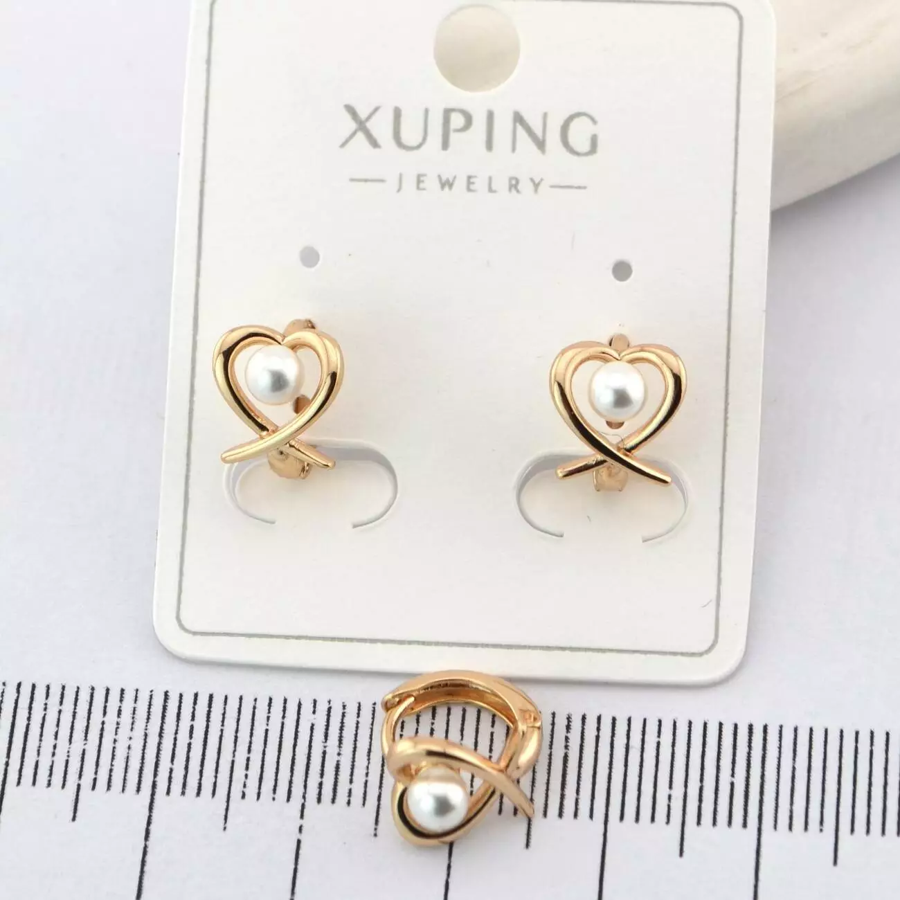 Сережки Xuping сердечки з перлиною з медичного золота позолота 18К (02006)