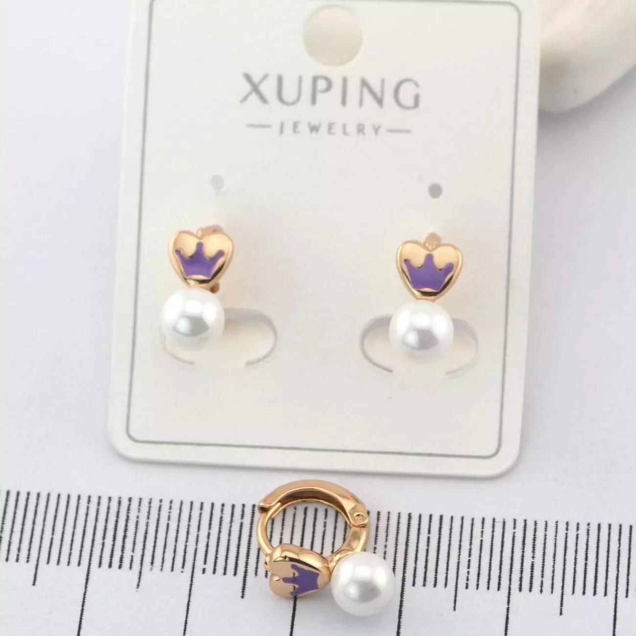 Сережки Xuping сердечко з короною і перлиною з медичного золота родій (01608)
