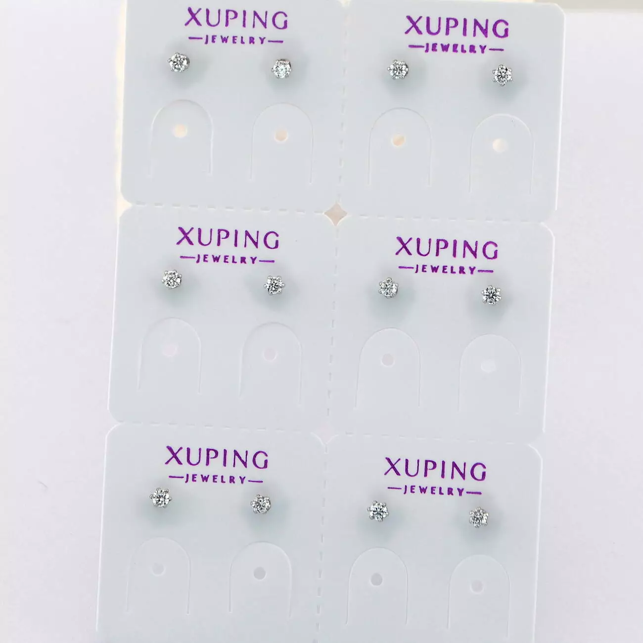 Сережки Xuping цвяшки (пусети) 2 мм (6 пар) з білим каменем з медичного золота родій