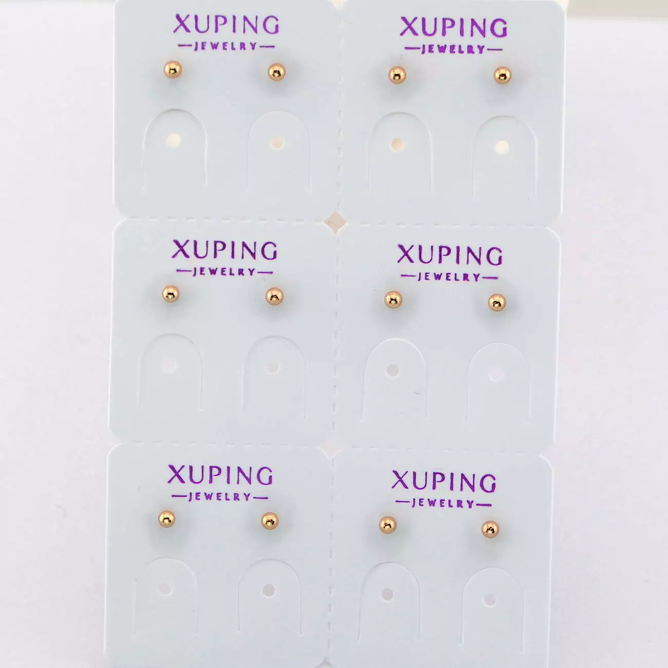 Сережки Xuping цвяшки (пусети) 2 мм (6 пар) з медичного золота позолота 18К