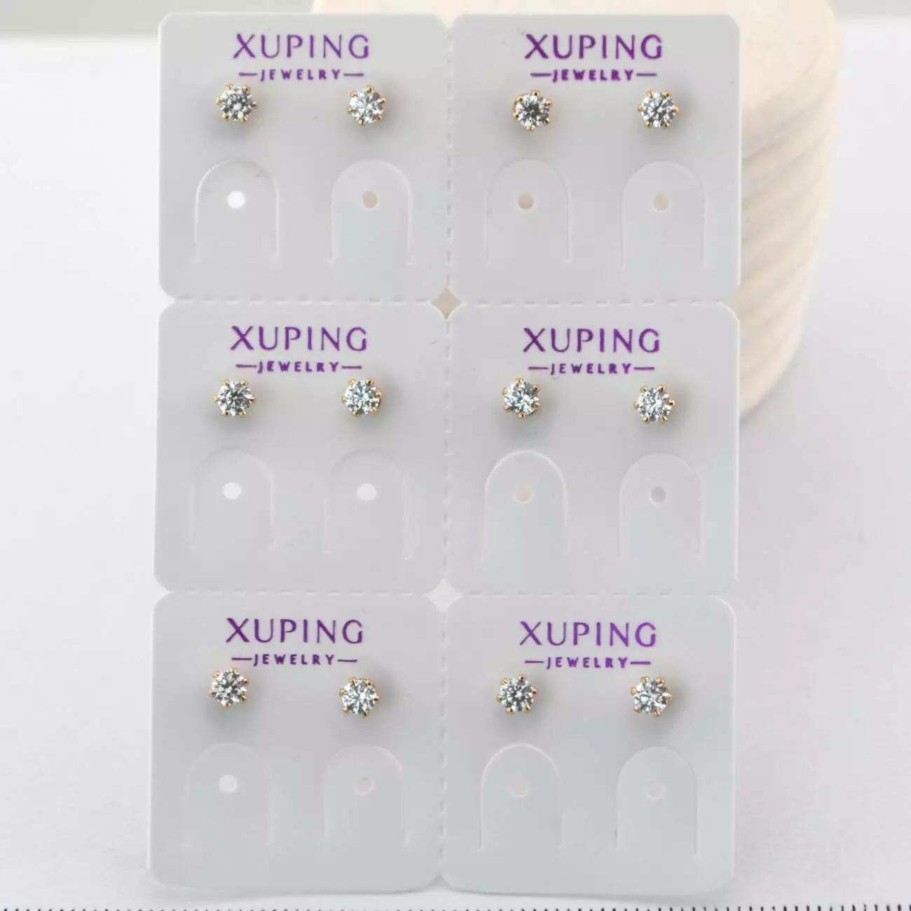 Сережки Xuping цвяшки (пусети) 3 мм (6 пар) з білим каменем з медичного золота позолота 18К (01917)