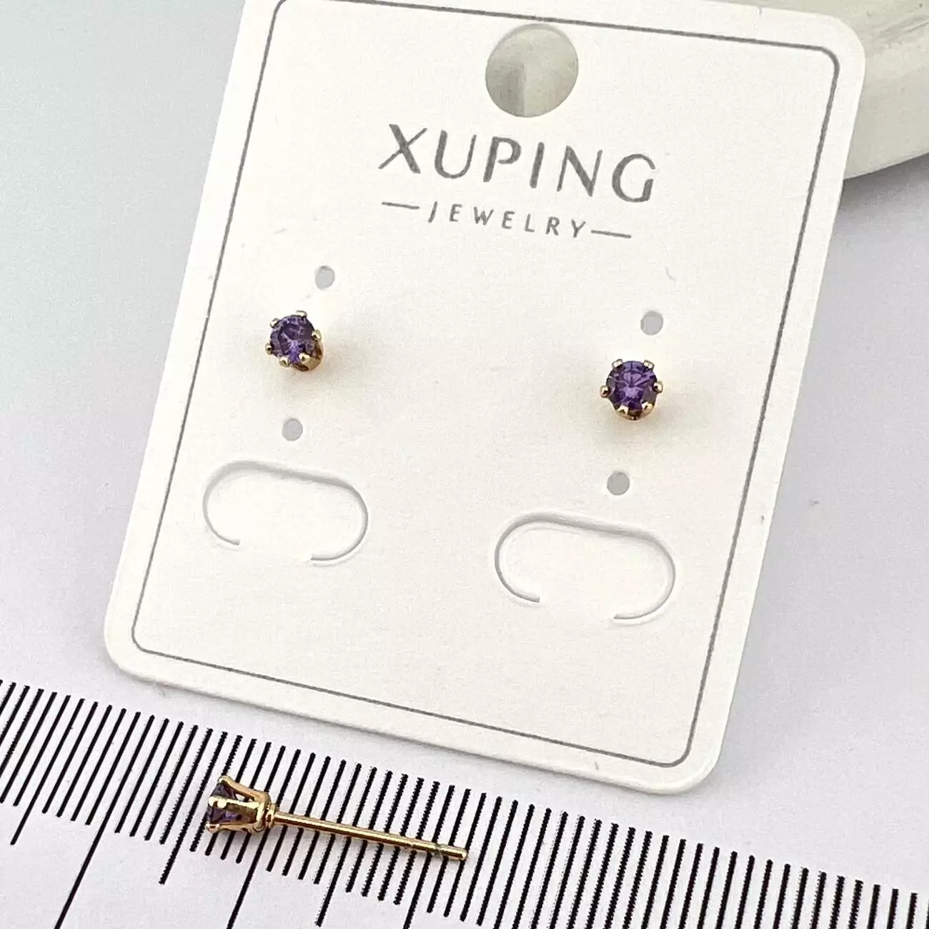 Сережки Xuping цвяшки (пусети) 3 мм з фіолетовим каменем з медичного золота позолота 18К