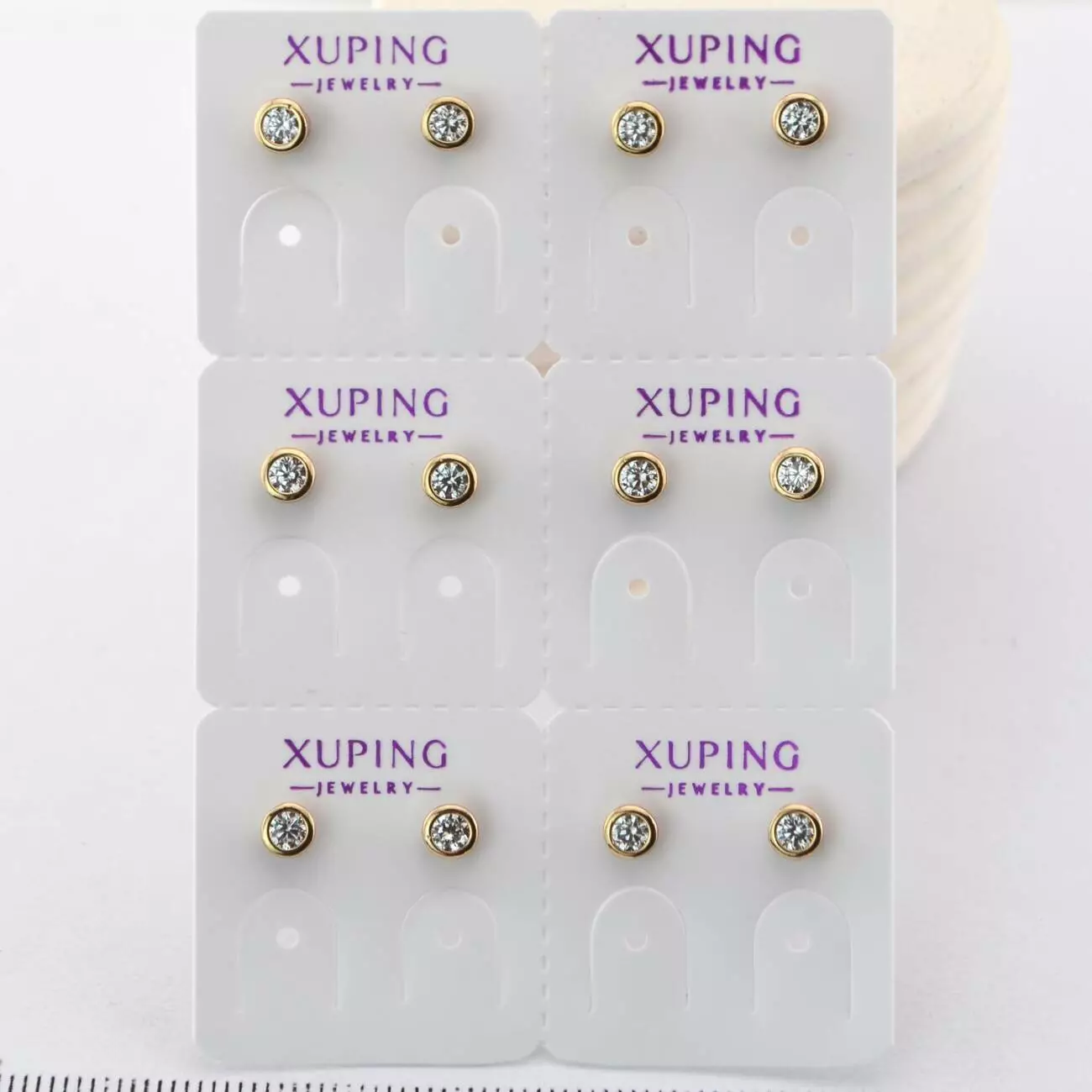 Сережки Xuping цвяшки (пусети) 4 мм (6 пар) з білим каменем з медичного золота позолота 18К (01918)