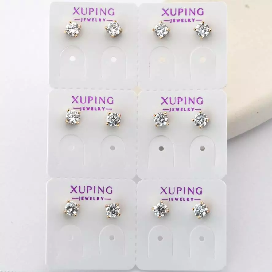 Сережки Xuping цвяшки (пусети) 4 мм (6 пар) з білим каменем з медичного золота позолота 18К