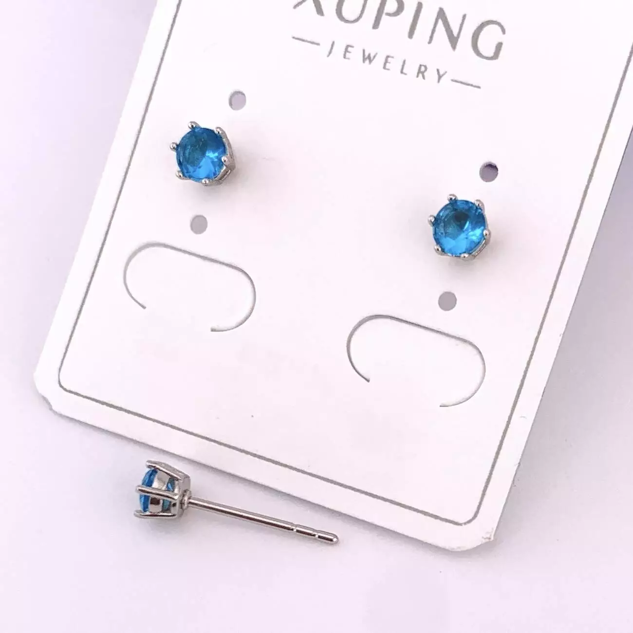 Сережки Xuping цвяшки (пусети) 4 мм з блакитним каменем з медичного золота родій