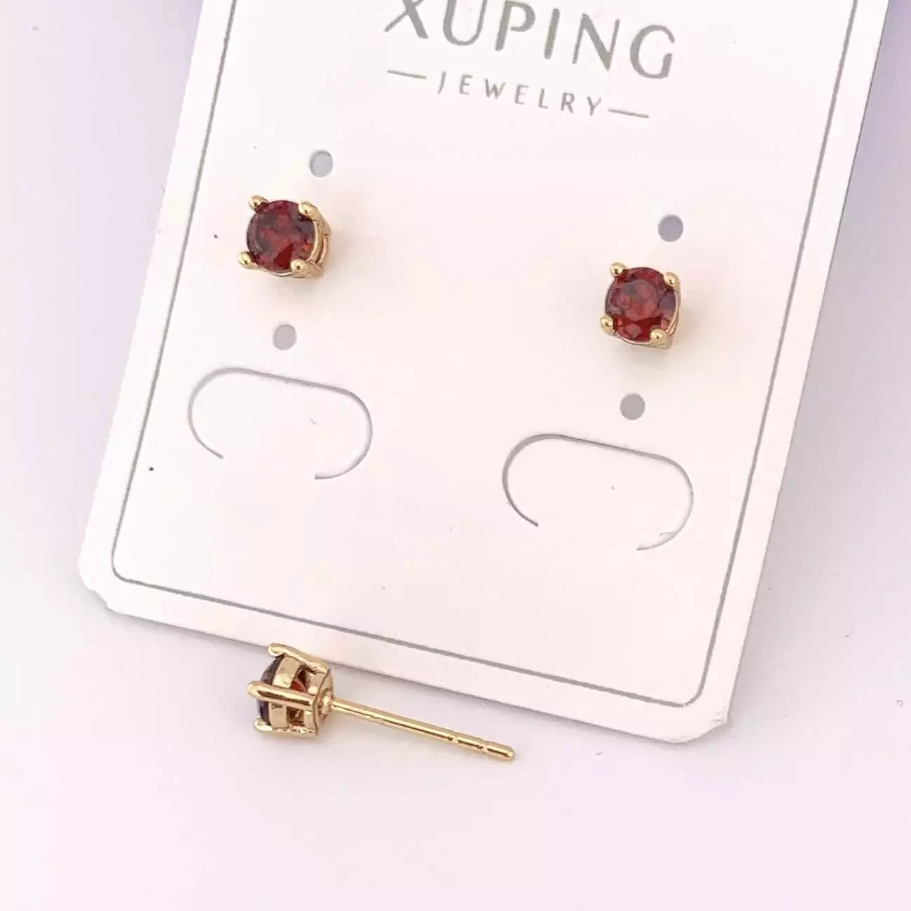 Сережки Xuping цвяшки (пусети) 4 мм з червоним каменем з медичного золота позолота 18К